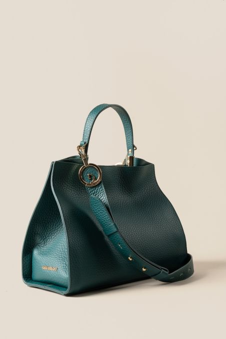 Handbag in full-grain tumbled calfskin with special tone-on-tone double-face finishing on the inside. Bag with a refined and minimal style, perfect for giving a chic tone to any look. The closure, characterised by a system of multi-magnets present in the center and on the sides, gives practicality and functionality to the model.