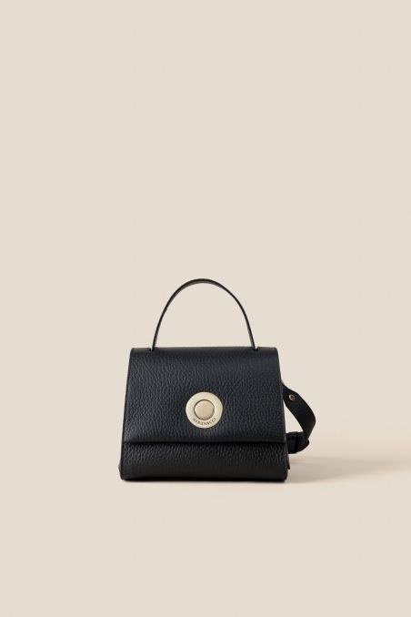 Timeless bowling bag by Gironacci Pelletterie in full-grain tumbled calfskin with special tone-on-tone double-face finishing on the inside.