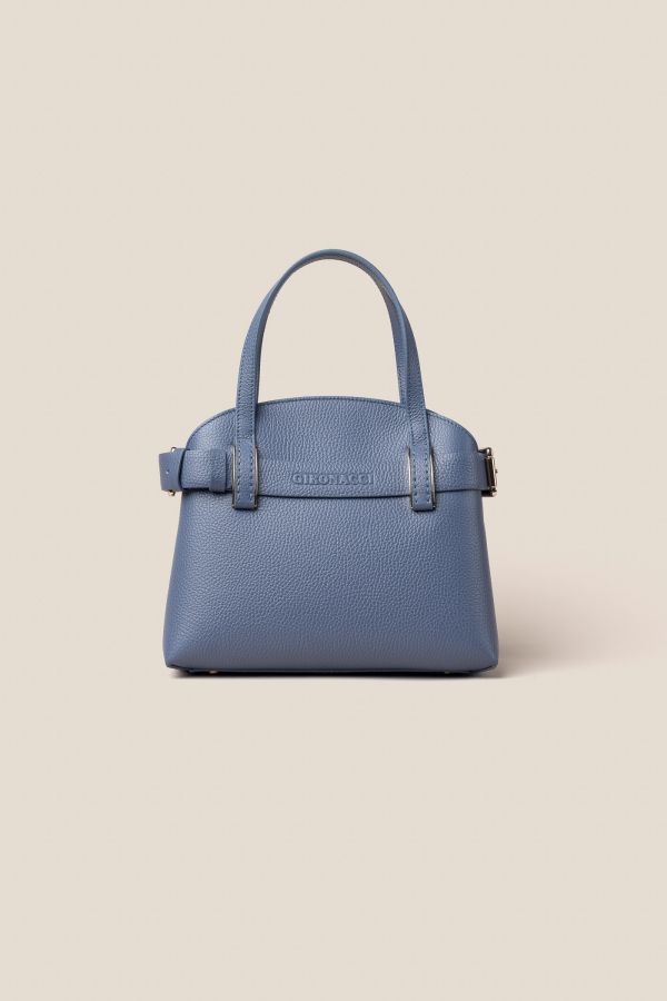 Mini Birkin-style handbag with a strap, crafted from premium semi-gloss calfskin leather with a regular incised grain, full-bodied and full to the touch, paired with a contrasting leather interior, and featuring an internal double magnetic closure.