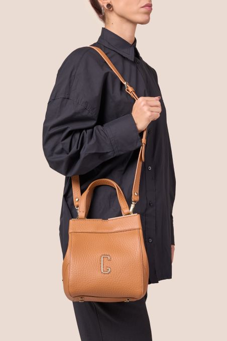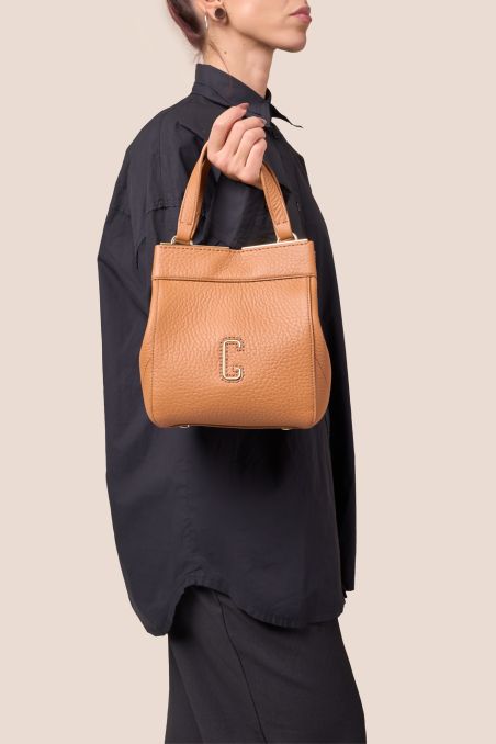 Handbag in full-grain tumbled calfskin with special tone-on-tone double-face finishing on the inside.