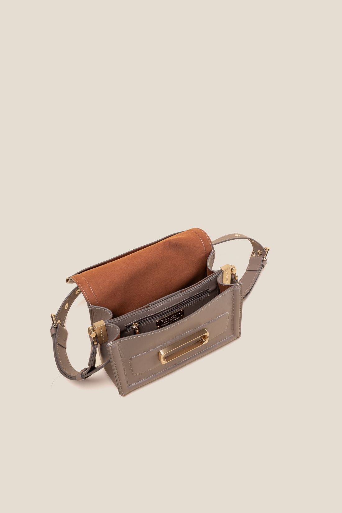 Handcrafted crossbody bag made of full-grain calf leather, featuring a compact silhouette and a contemporary design with clean, essential lines.