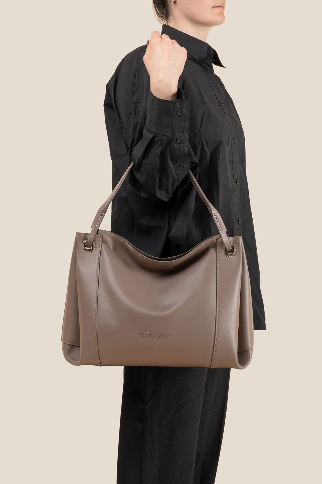 Handcrafted shoulder bag in premium full-grain leather, featuring a soft and linear design that combines elegance and functionality.