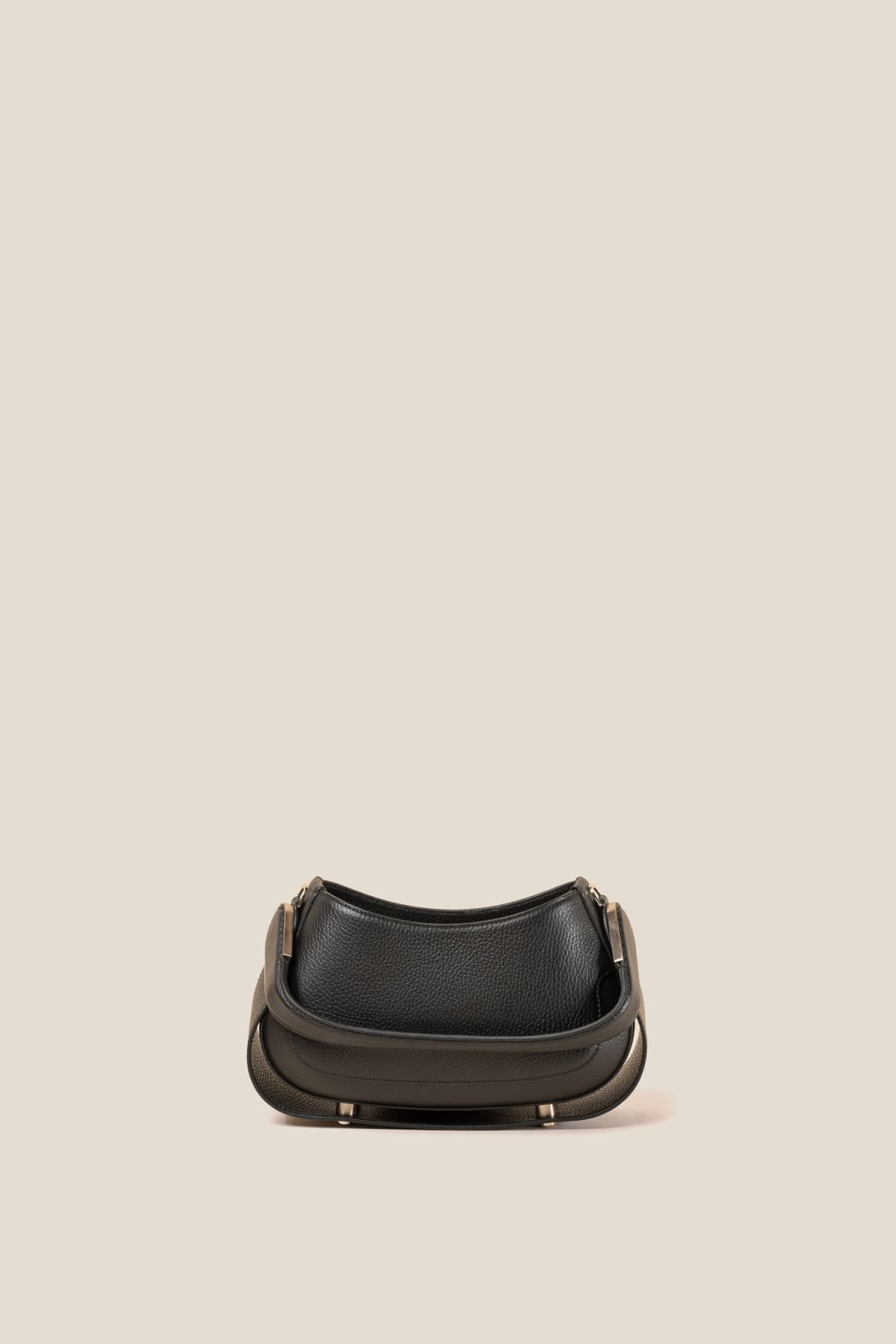 Handcrafted top-handle bag in genuine pebbled leather, paired with contrasting smooth leather on the inside. A unique construction combines soft curves with structured profiles, creating a refined and contemporary silhouette.