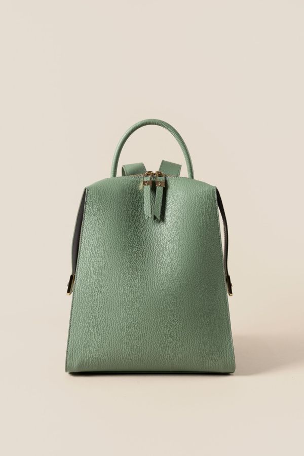 Zaino compatto, perfetto per il tempo libero e per il lavoro. Il modello è realizzato in preziosa pelle di vitello bottalato accoppiata internamente con pellame di colore a contrasto.