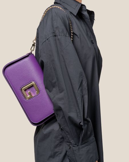 Cross Body realizzata in preziosa pelle di vitello bottalato accoppiata internamente con pellame di colore a contrasto.