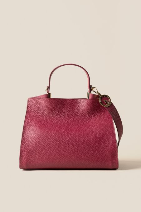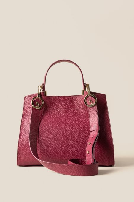 Borsa a mano in pelle di vitello bottalato pieno fiore con particolare rifinizione double face tono su tono all'interno. Borsa dallo stile raffinato e minimal, perfetta per conferire un tono chic ad ogni look. La chiusura, caratterizzata da un sistema di multi-calamite presenti al centro e sui lati, conferisce praticità e funzionalità al modello.