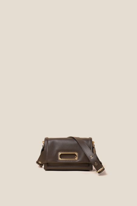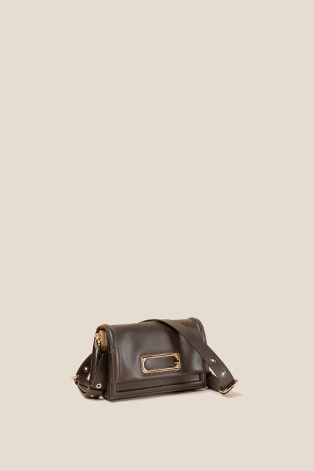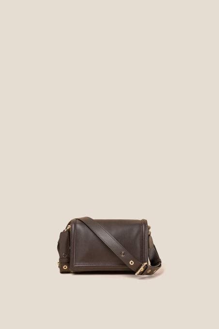 Borsa a tracolla realizzata artigianalmente in vitello pieno fiore, caratterizzata da una silhouette compatta e da un design contemporaneo dalle linee pulite ed essenziali.