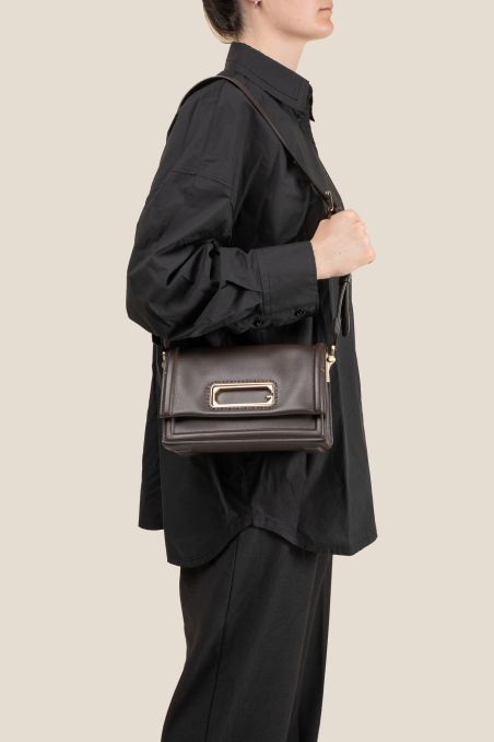 Dotata di tracolla regolabile, può essere indossata comodamente a spalla o a tracolla, rendendola perfetta per un uso quotidiano versatile e sofisticato.