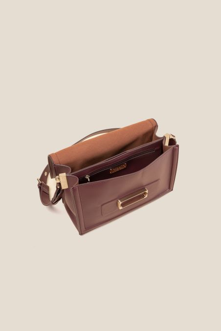 Borsa a tracolla realizzata artigianalmente in vitello pieno fiore, capiente ma dalle linee essenziali, elegante e distintiva.