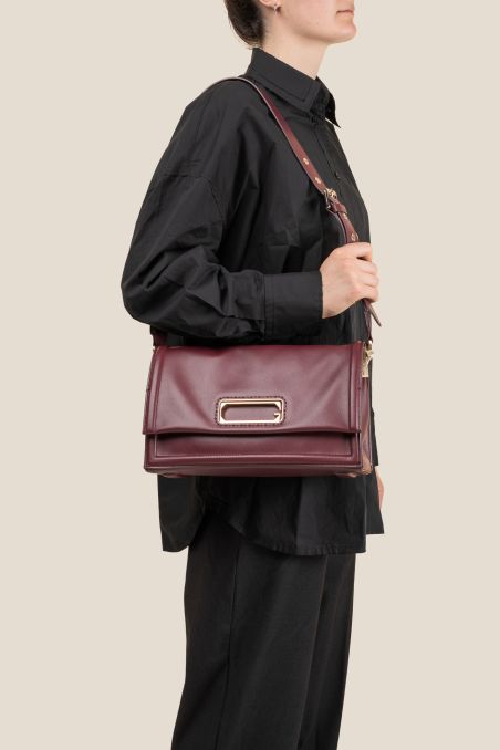 Dotata di tracolla regolabile, può essere indossata comodamente a spalla o a tracolla, rendendola perfetta per un uso quotidiano versatile e sofisticato.