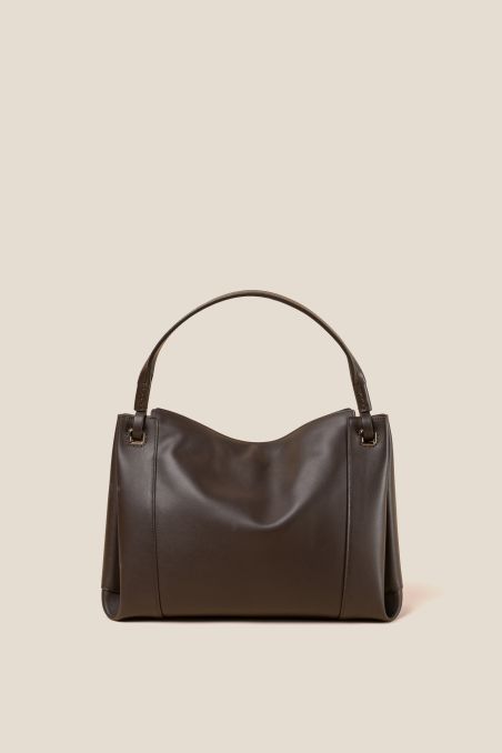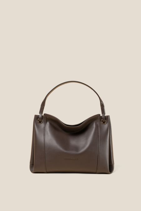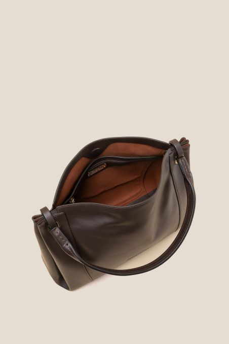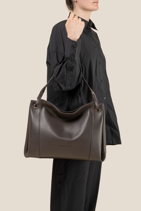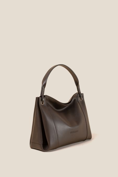 Borsa a spalla artigianale in pelle pieno fiore, dal design morbido e lineare che unisce eleganza e funzionalità.