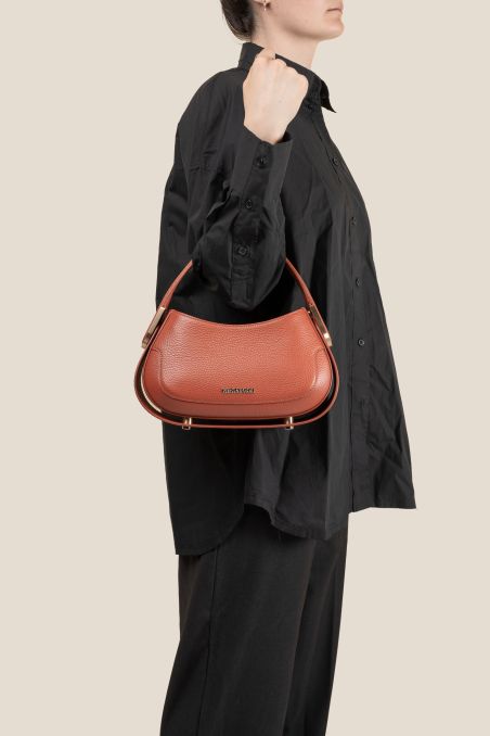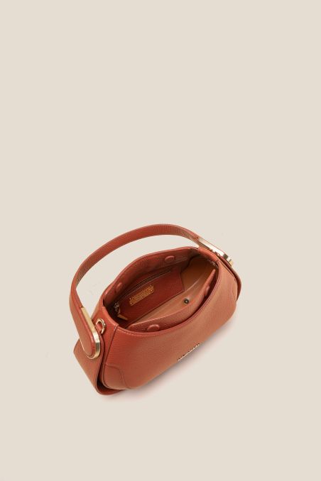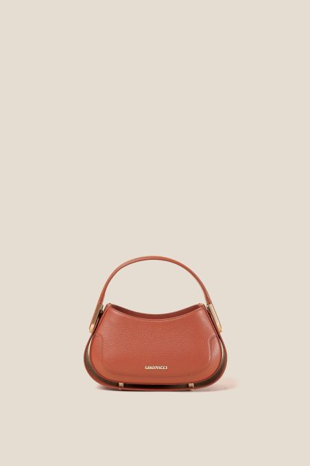 Borsa a mano artigianale in vera pelle bottalata, accoppiata internamente con pelle a contrasto, caratterizzata da una costruzione unica che unisce linee morbide e profili strutturati.