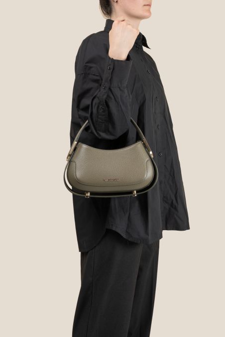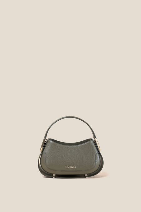 Borsa a mano artigianale in vera pelle bottalata, accoppiata internamente con pelle a contrasto, caratterizzata da una costruzione unica che unisce linee morbide e profili strutturati.