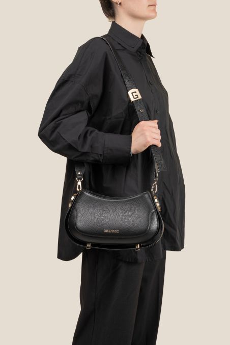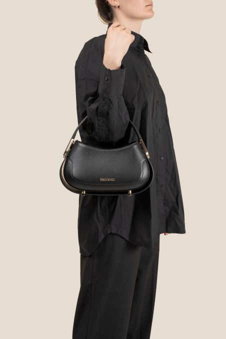 Borsa a mano artigianale in vera pelle bottalata, accoppiata internamente con pelle a contrasto, caratterizzata da una costruzione unica che unisce linee morbide e profili strutturati. Il design compatto e ricercato si distingue per la sua eleganza contemporanea, impreziosito da dettagli metallici con finitura galvanica oro chiaro che donano luce e raffinatezza. La doppia scocca sul fondo, elemento distintivo della costruzione, ne esalta il pregio e la ricercatezza, valorizzando la forma e la stabilità della borsa. Dotata di manico superiore per essere portata a mano e di una tracolla regolabile e removibile, può essere indossata anche a spalla o a tracolla, offrendo massima versatilità. L’interno, completamente rivestito in pelle, dispone di due tasche, di cui una con zip, per mantenere gli oggetti personali sempre in ordine. La chiusura a patta interna con magneti a scomparsa assicura praticità e discrezione, mantenendo linee pulite e un profilo elegante. Un accessorio raffinato e contemporaneo, espressione della qualità artigianale e dell’eccellenza della pelletteria italiana firmata Gironacci Pelletterie. Esterno:100% pelle bottalata Interno: 100% pelle Larghezza: 29 cm Altezza: 16 cm Altenzza con manico: 28,5 cm Profondità: 10,5 cm Fatto artigianamente in Italia / Montegranaro