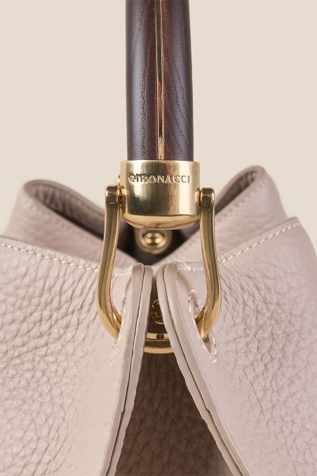 Borsa a Mano in Pelle Pieno Fiore con Manico in Legno.
