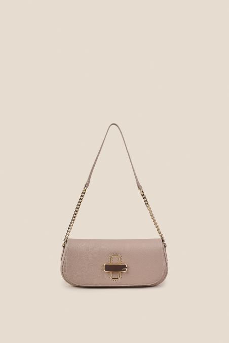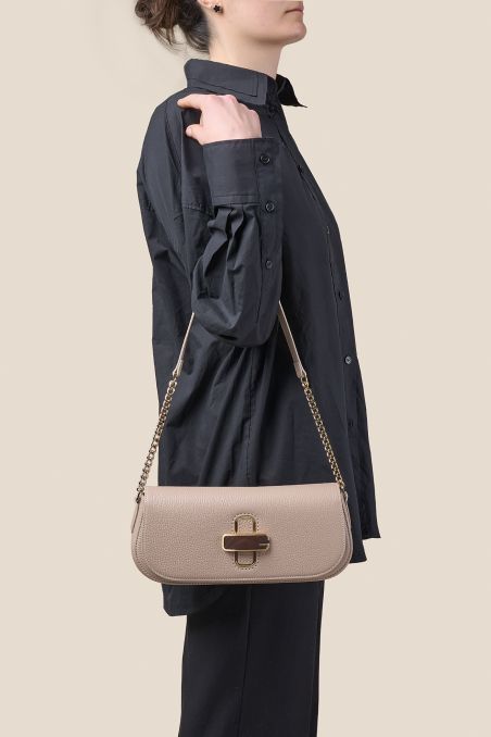 L'estetica incontra la massima funzionalità grazie a un design studiato per la versatilità. La borsa è dotata di un elegante manico a spalla con inserto in catena e comodo spallaccio in pelle, accompagnato da una seconda tracolla in pelle, regolabile e removibile. Un dettaglio che ti permette di indossarla agevolmente sia a spalla che crossbody, adattandosi a ogni occasione.
