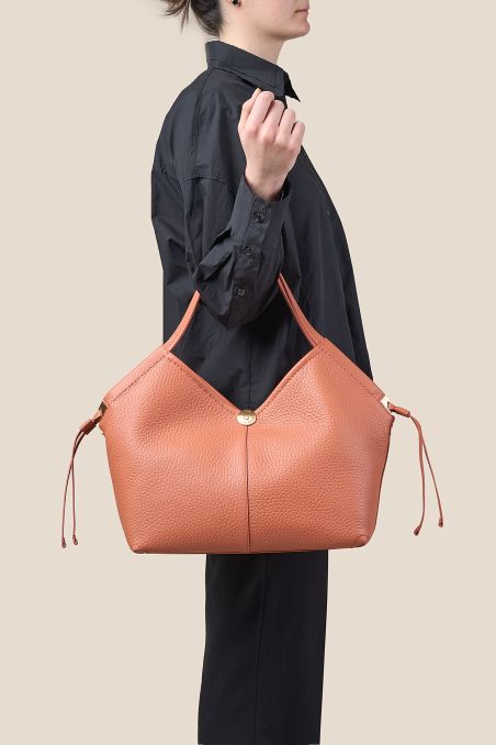 Il discreto logo frontale “G” firma il modello, espressione dell’identità Gironacci Pelletterie. I manici strutturati sono studiati per appoggiarsi comodamente alla spalla, garantendo comfort per tutto il giorno. A renderla ancora più pratica e versatile è la presenza di una comoda trousse interna in tessuto: un accessorio completamente estraibile, perfetto per organizzare l'essenziale e trasferirlo in un attimo da una borsa all'altra.