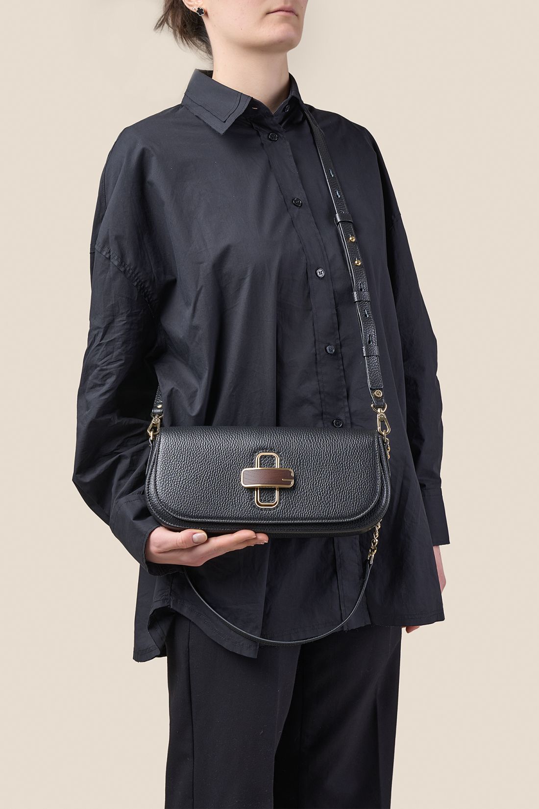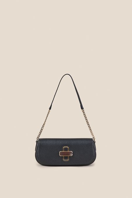 L'estetica incontra la massima funzionalità grazie a un design studiato per la versatilità. La borsa è dotata di un elegante manico a spalla con inserto in catena e comodo spallaccio in pelle, accompagnato da una seconda tracolla in pelle, regolabile e removibile. Un dettaglio che ti permette di indossarla agevolmente sia a spalla che crossbody, adattandosi a ogni occasione.