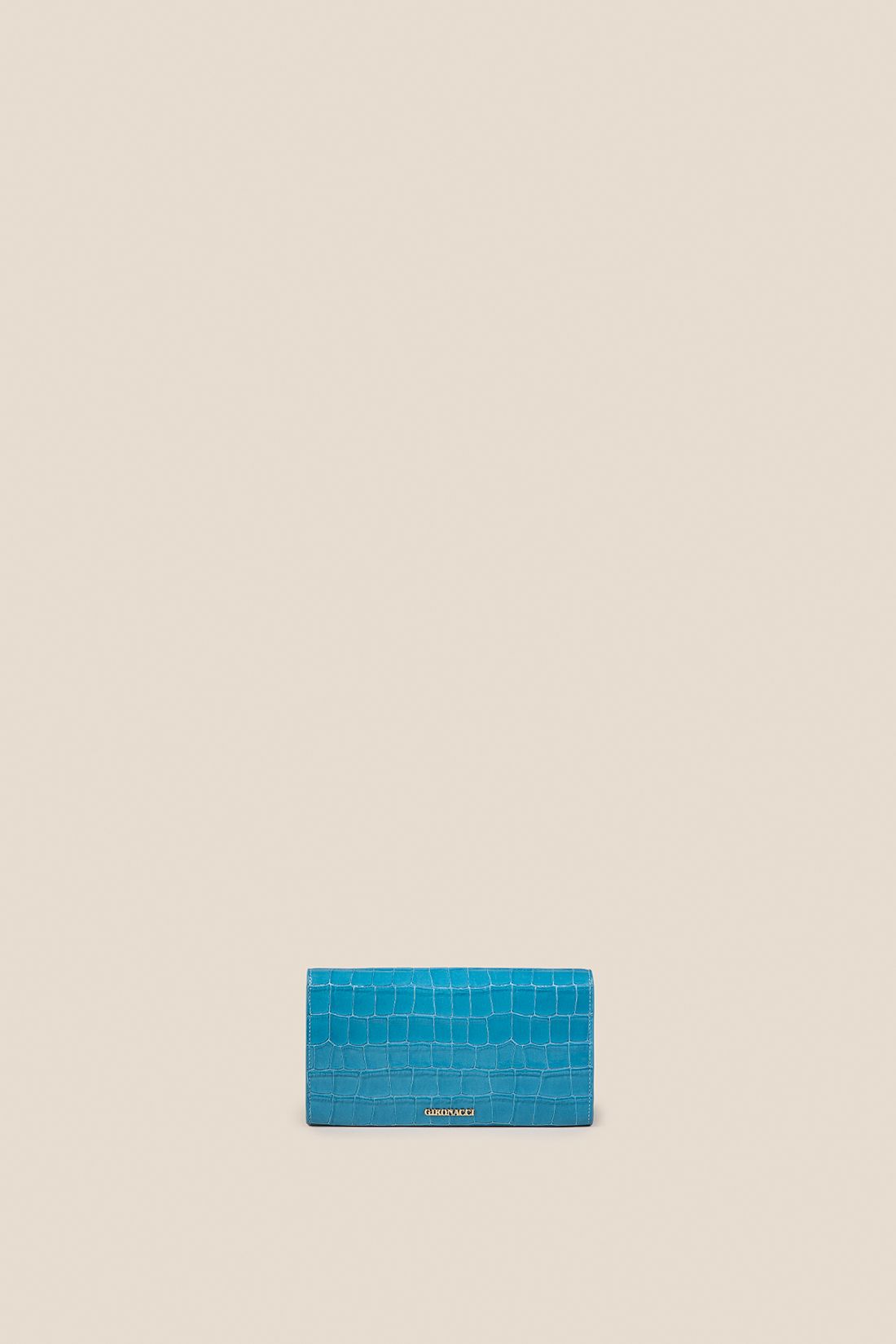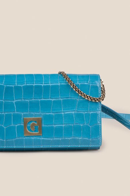 Realizzato in pregiato vitello con un'elegante stampa cocco, si distingue per la sua texture ricercata che ne esalta l'estetica sofisticata. A impreziosire le linee pulite del modello è il logo frontale “G” in metallo: un dettaglio con finitura galvanica oro che firma la creazione con discrezione e carattere, richiamando la luminosità degli inserti in catena.